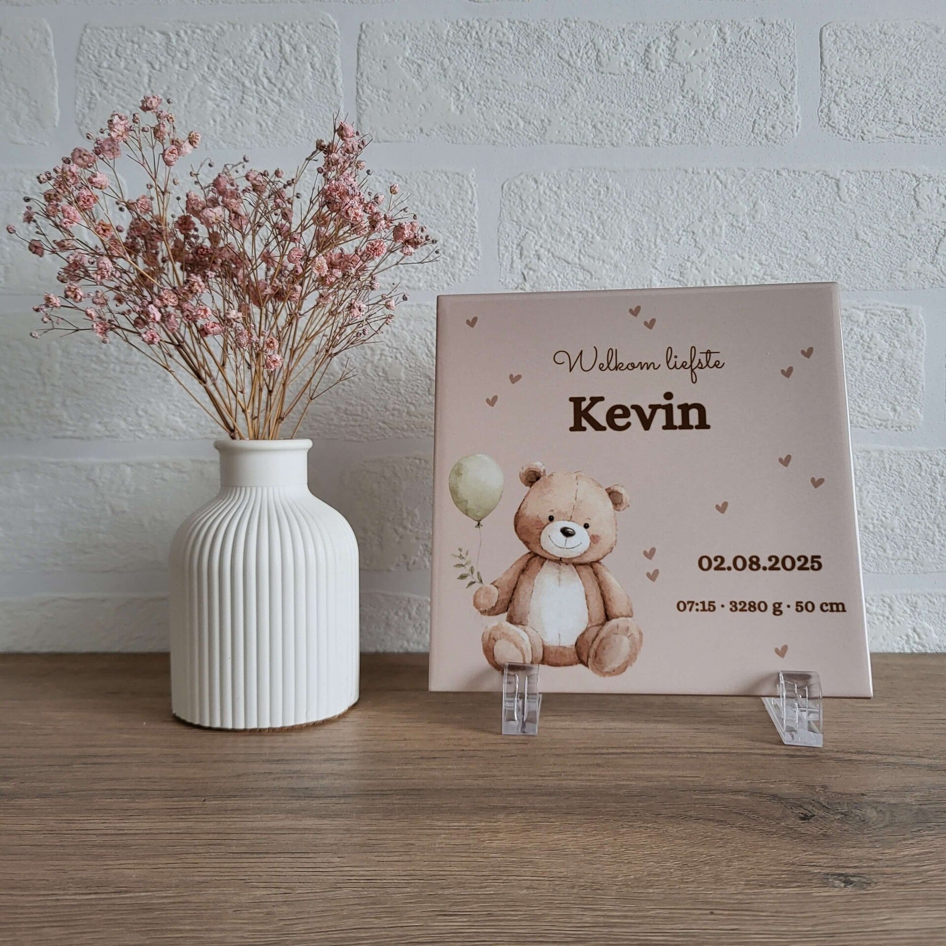 Een lief klein beertje dat staat voor warmte en bescherming. Deze geboortetegel straalt rust en liefde uit.