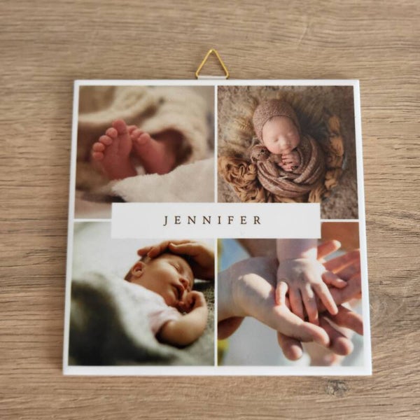 Maak een uniek en persoonlijk aandenken met ons speciale baby collage tegeltje! Perfect als kraamcadeau, verjaardagscadeau of om een dierbaar moment te vereeuwigen.