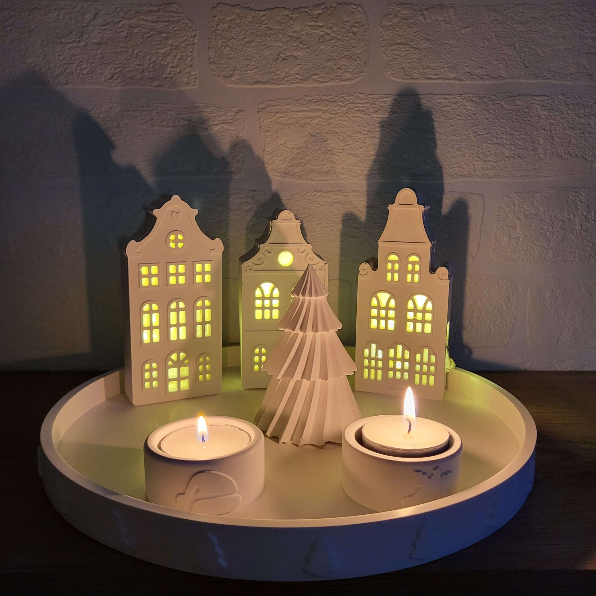 Breng warmte en sfeer in huis deze feestdagen met de handgemaakte Jesmonite Kerstset van JoyFul Projects.